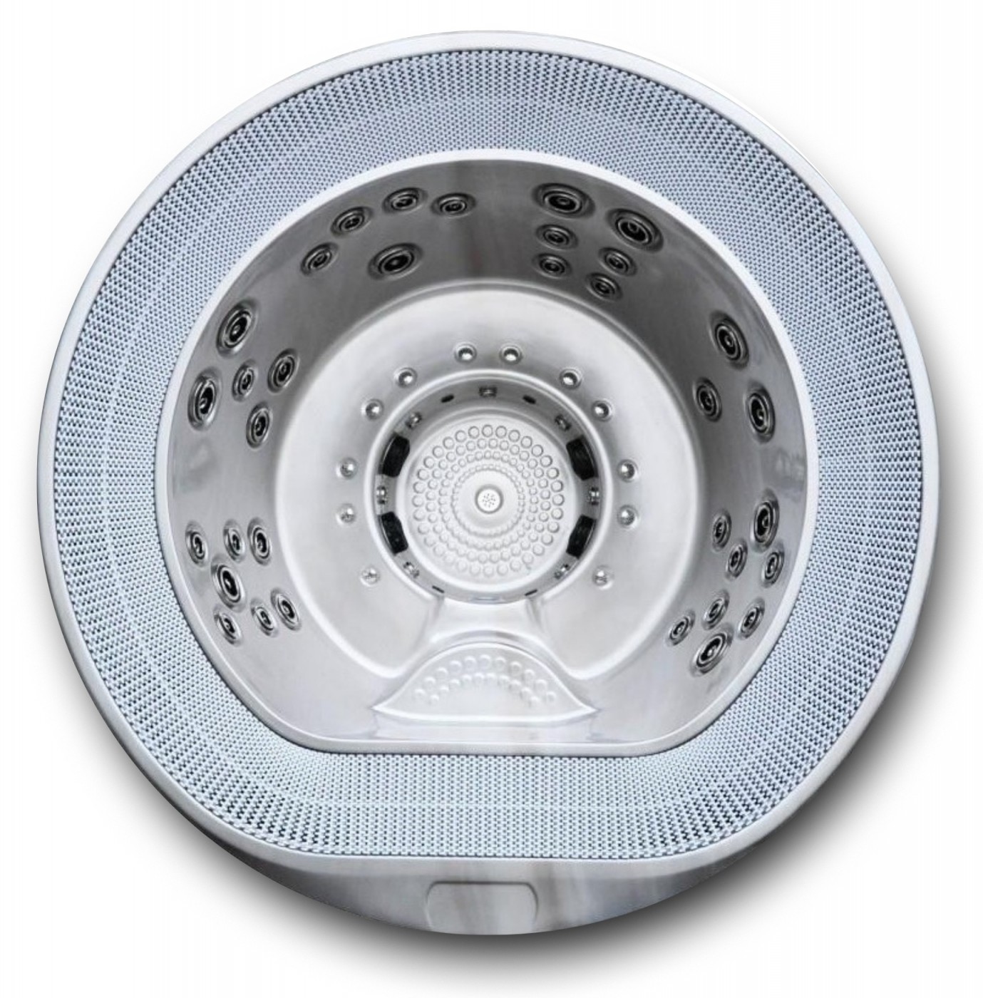 Verejná/komerčná kruhová vírivka s prepadommodelORBITje vyrábaná z kvalitného antibakteriálneho akrylátu v odtienibiela perla.Samozrejmosťou je 7 farebné LED osvetlenie s jedným hlavným svetlom, hladinovým osvetlením a podsvieteným prelivovým žľabom.